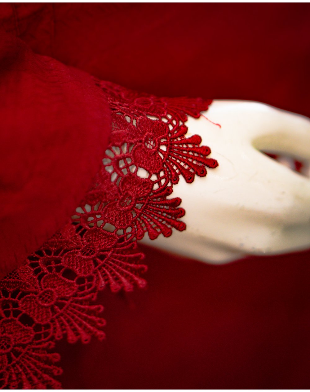 The shirt features beautifully crafted panel work paired with delicate lace detailing, adding a hint of luxury to an otherwise simple silhouette. The intricate placement of laces on the shirt brings out a sophisticated charm without making it feel overdone, making this outfit easy to style up or down depending on the occasion.