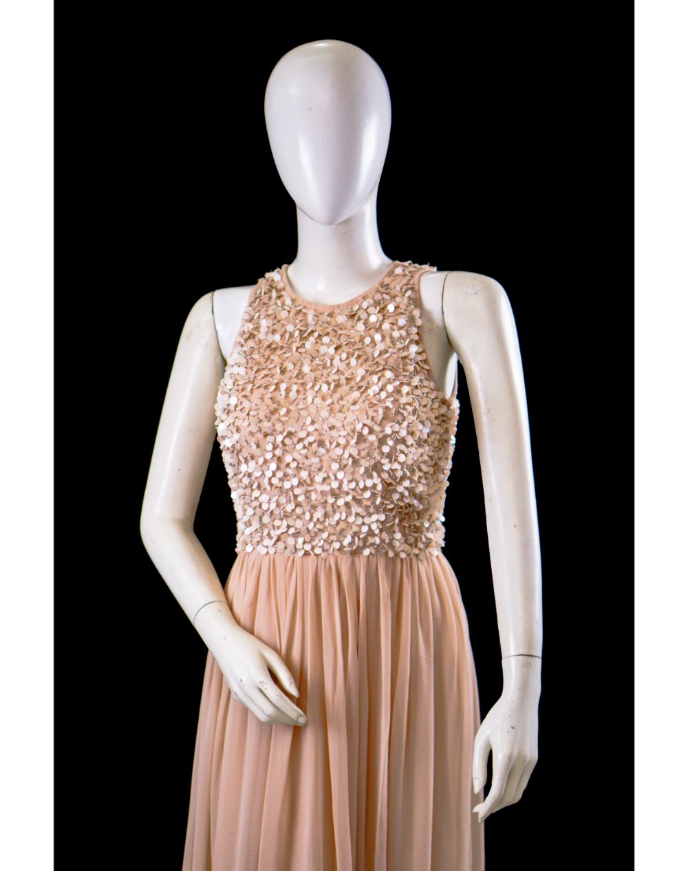 What sets this formal chiffon maxi in Pakistan apart is the intricate sequin embellishment on both the front and back, offering shimmer from every angle. The delicate sparkle adds just the right amount of drama without overpowering the elegant silhouette.