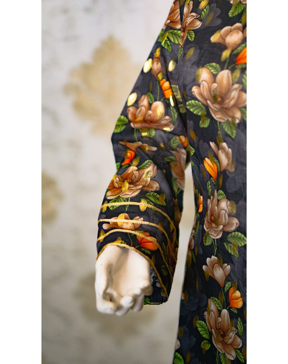 Crafted from premium shimmery lawn, the fabric catches light beautifully, giving you an effortlessly glamorous presence without being overpowering. The intricate tailoring ensures the perfect fall and flow, enhancing your silhouette.